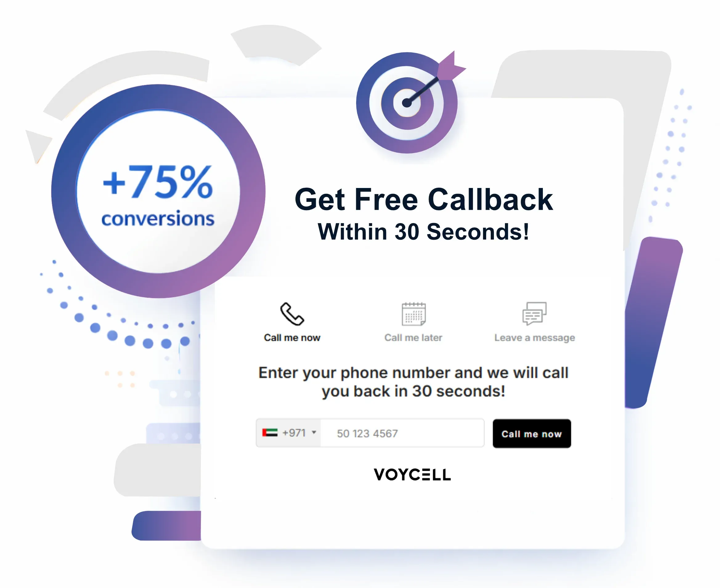 With Voycell’s website callback feature, visitors can request a callback in seconds. Instead of waiting, your visitors get a call right away. This quick connection helps answer their questions fast and makes it more likely they will take action.